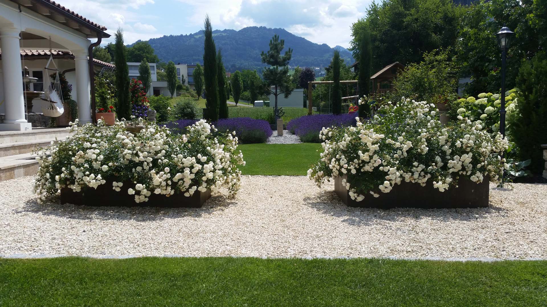Durch die passende Anordnung von Bäumen, Sträuchern, Teich und Beeten lassen sich die unterschiedlichsten gestalterischen Akzente setzen. So können etwa einzelne Bereiche abgegrenzt und andere in Szene gesetzt werden, harmonische Farbkompositionen und thematische Bereiche entstehen. Hinzu kommt, dass sich durch eine geschickte Pflanzenwahl und das Einhalten bestimmter Abstände zwischen den Pflanzen der Pflegeaufwand reduziert und grundstücksrechtliche Probleme ausbleiben.
